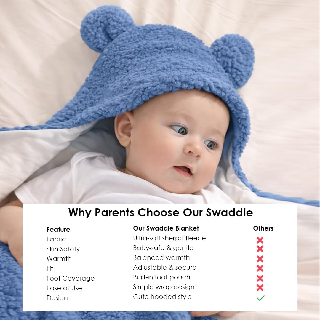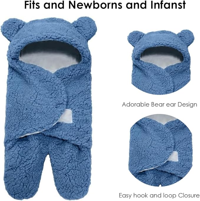 Cute ‘n’ Cuddle Baby Swaddle Blanket Ultra-Soft Swaddling Wrap For Infant Unisex Baby Hooded Swaddle Blue