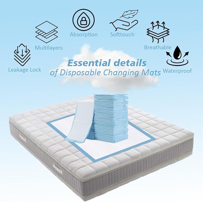 Made with soft, skin-friendly material and an absorbent core, these disposable mats prevent mess and keep surfaces clean.